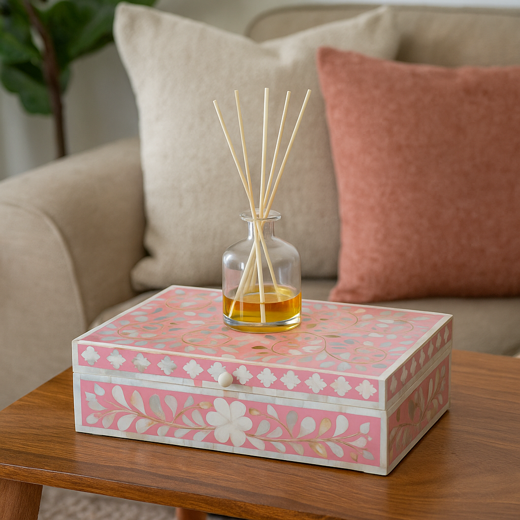 And these boxes will not only tidy up the space, they’ll also make it prettier with their gorgeous colour & hand inlaid designs.