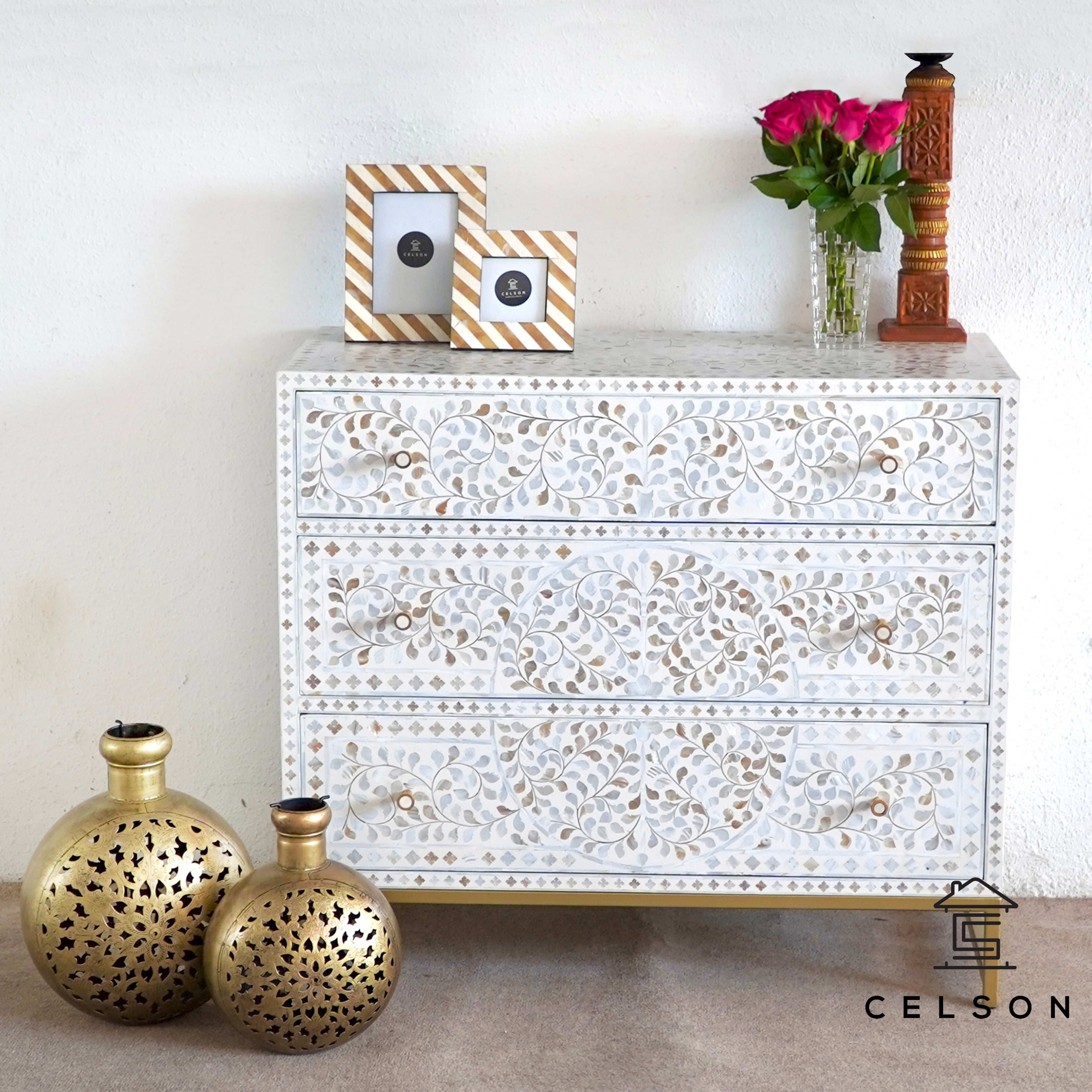 This stunning floral pattern mop inlay cabinet comes with 3 drawers, which look stunning and it also provides a good amount of storage space.