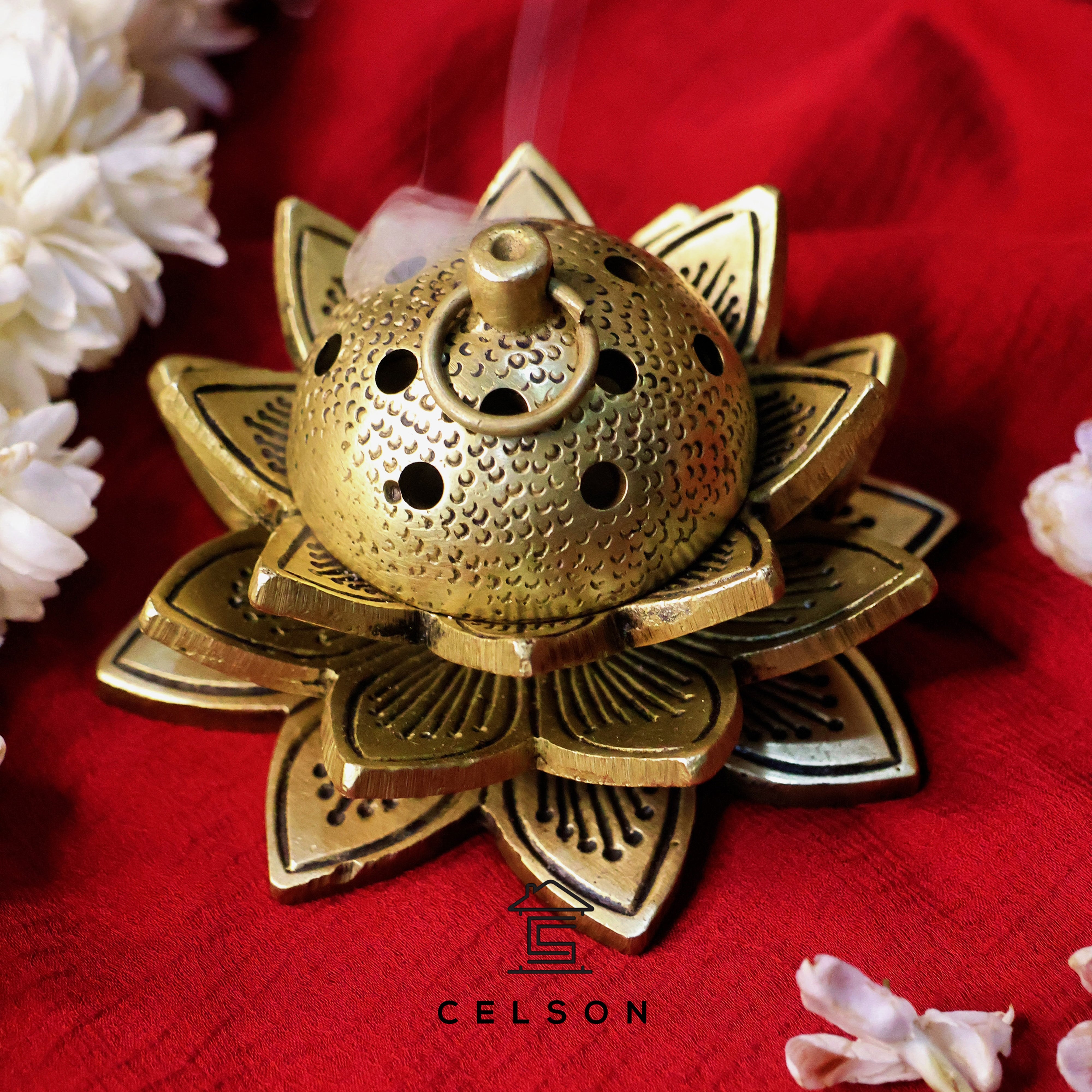 Create a sacred atmosphere with this ornate brass dhoop holder.