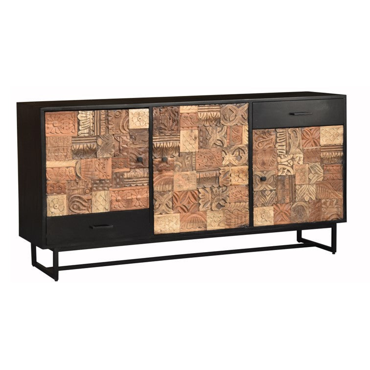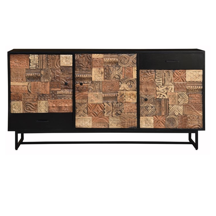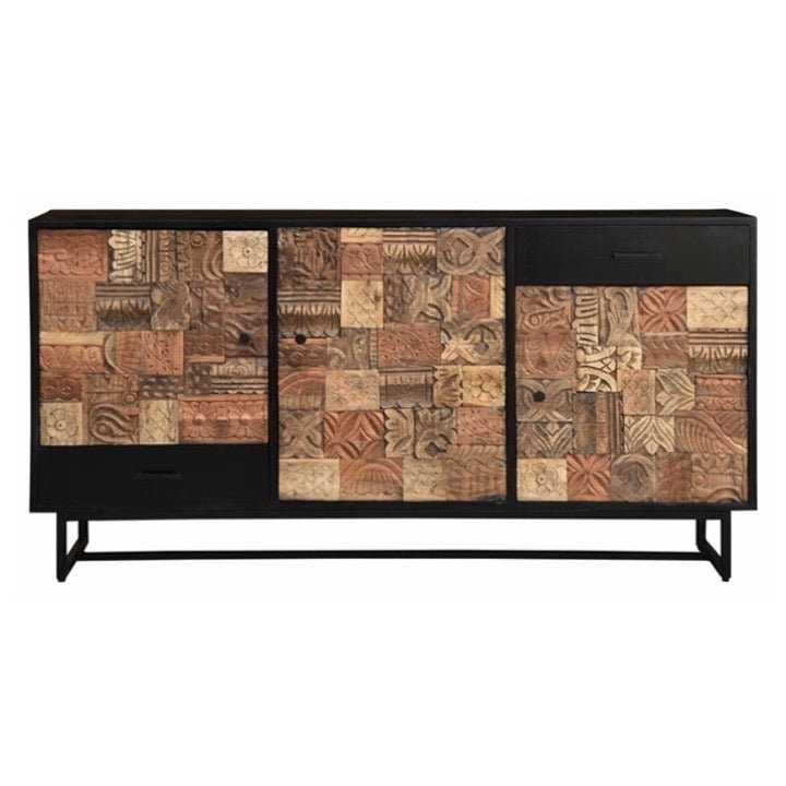 This gorgeous hand carved side board is all you need! The has 3 doors & 2 drawers, where you can easily tuck away all your extras!