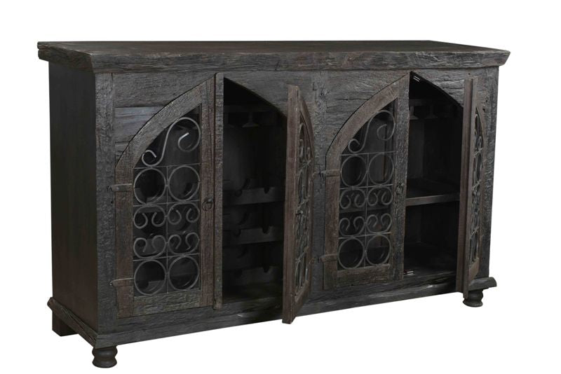 This old look beauty comes with a good storage capacity for bottles, glasses and accessories. The top can be used as a counter which can be used to mix drinks, keep bottles & much more.