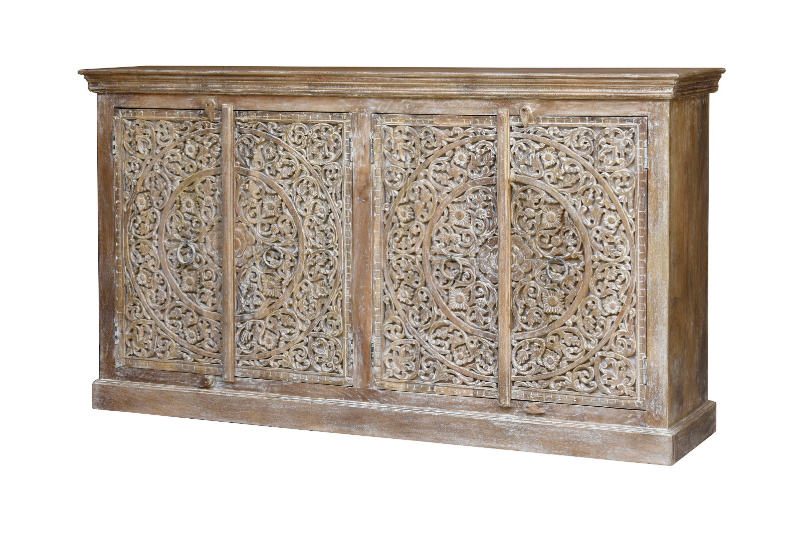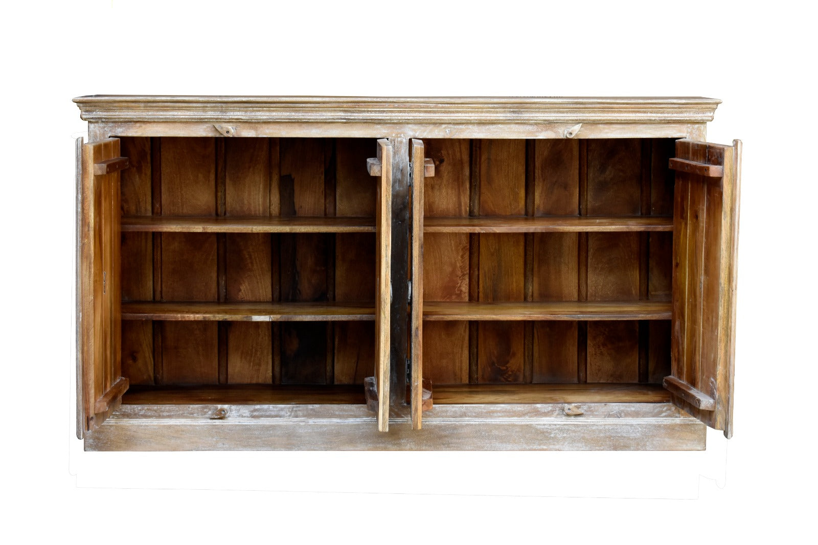 It comes with four hand carved doors in a lovely distressed finish perfect to get along with any existing decor.