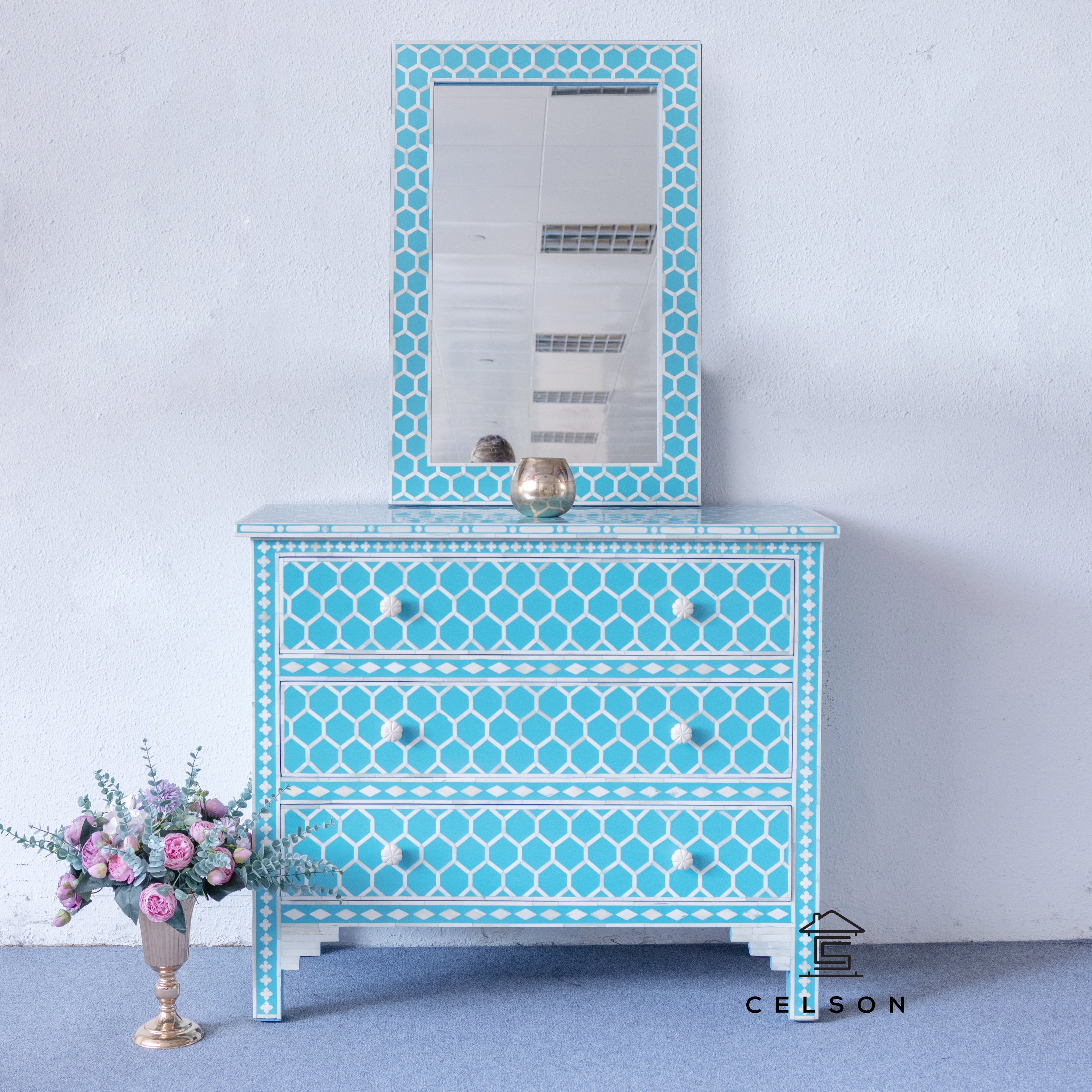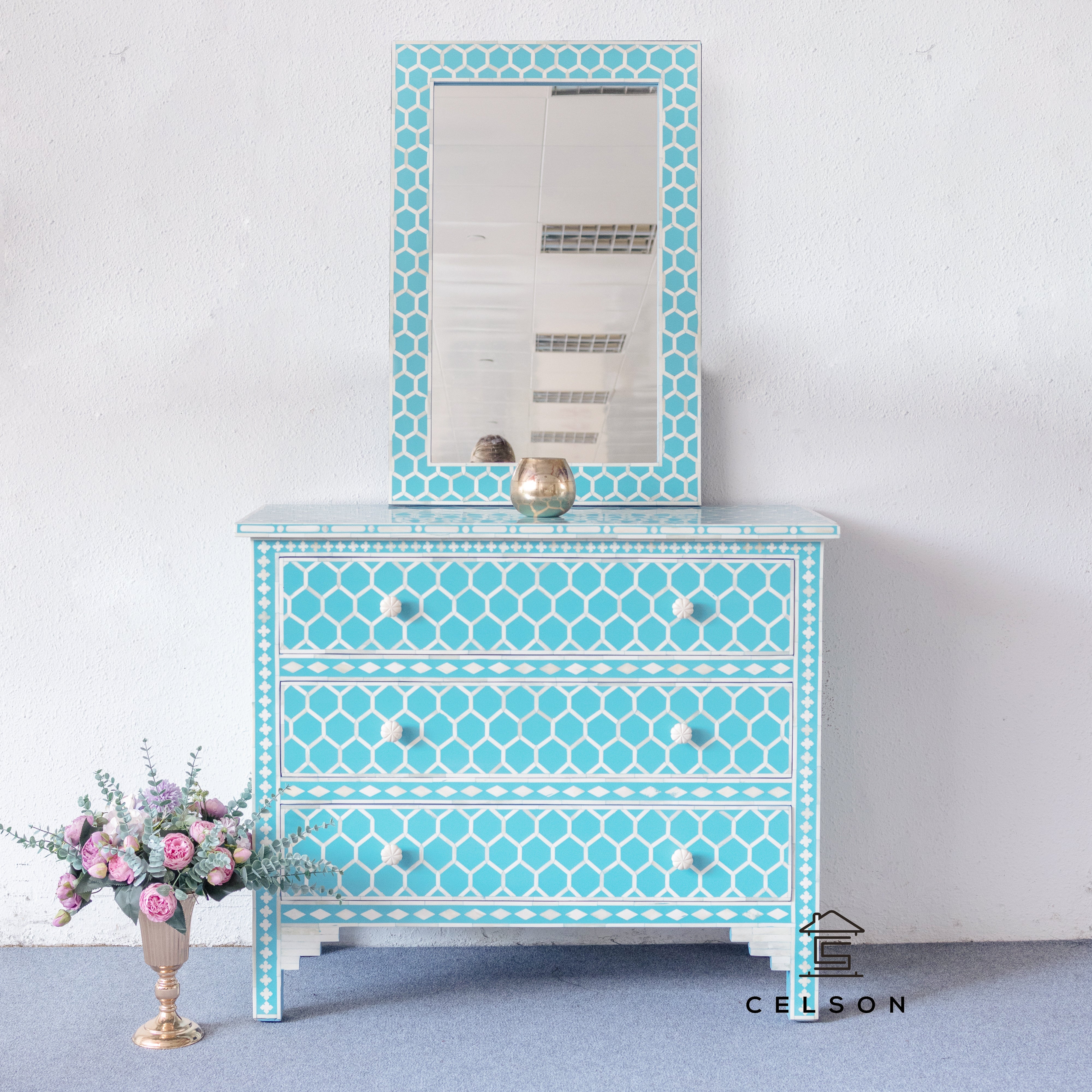 3 drawers, beautiful design, and a matching mirror to tie it all together.