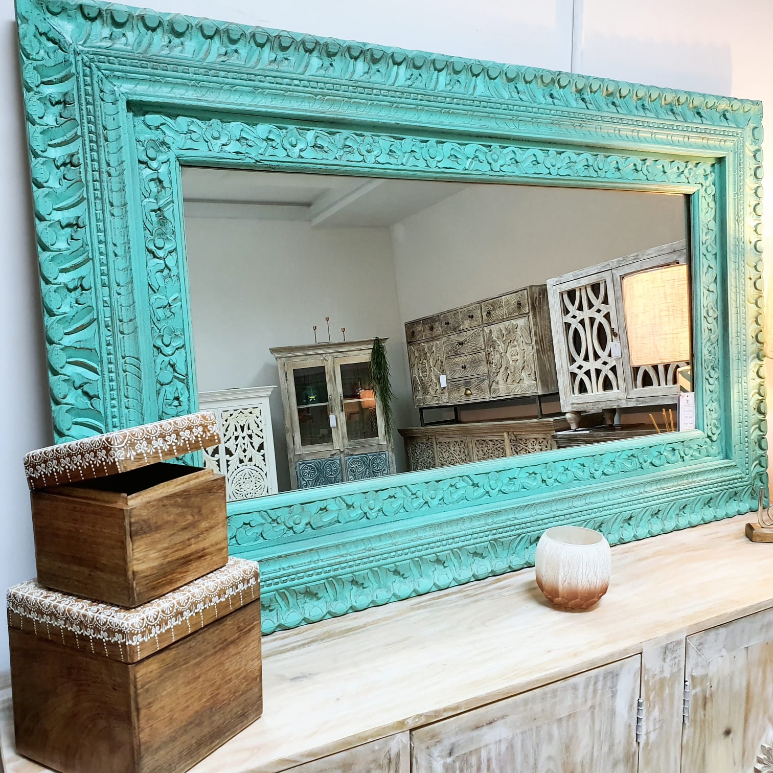 And this stunner right here is made from mango wood with hand carved intricate detailing.