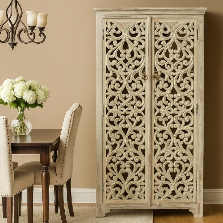 The versatility of an almirah is unbeatable. It can be used for multiple purposes such as storing clothes, dinnerware, home products & any extras. This almirah has a grey color exterior with complimenting hardware which will make it stand out in any setting.