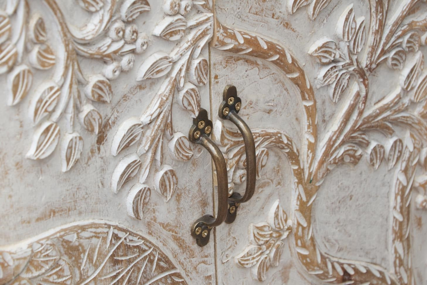 This hand carved beauty comes with a shelf inside and 2 drawers on top, which are perfect to store everyday bed & bath linen or be used as a kids toy’s storage.