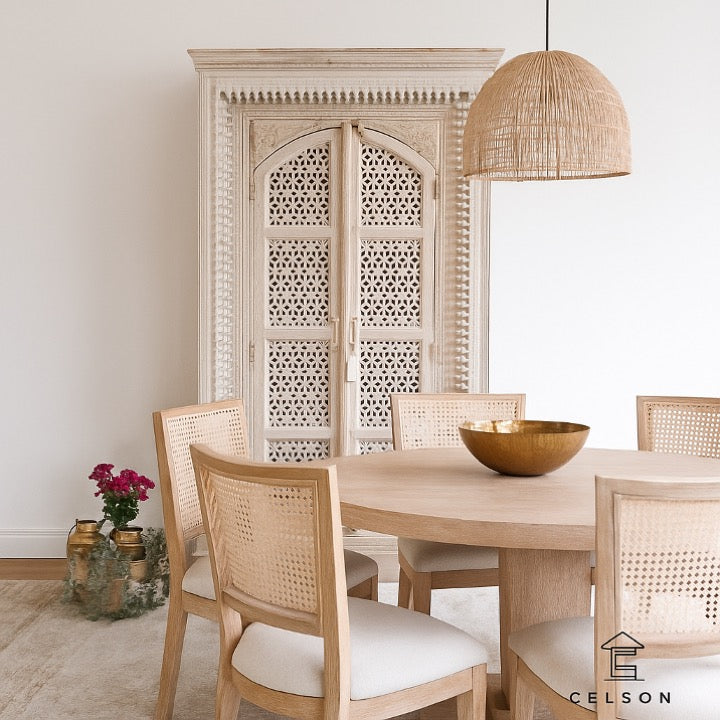 Our Megha almirah, having sturdy mango wood construction with beautiful in white washed finish works perfectly with the color scheme of any bedroom, living room, and hallway or entryway.