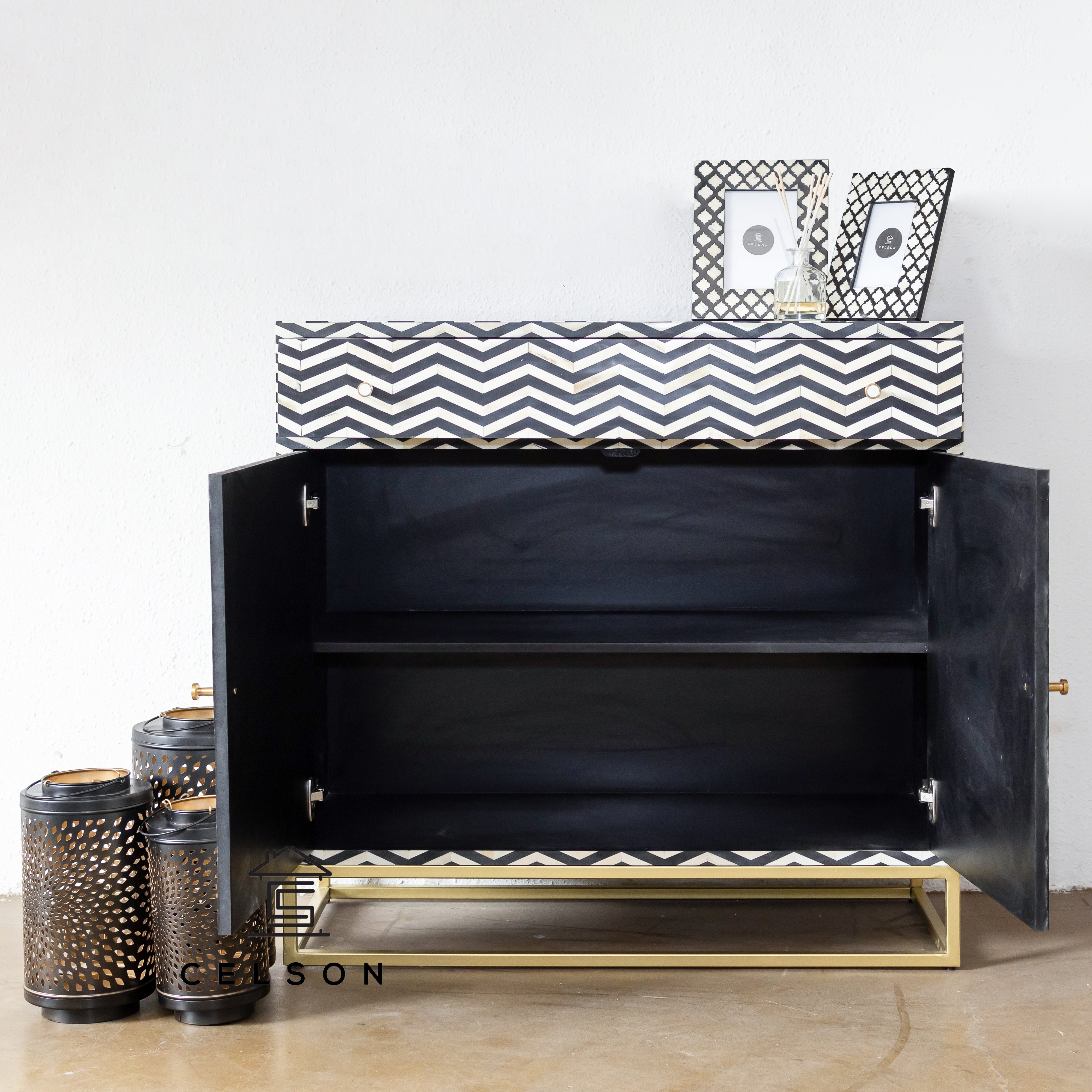 With its 2 doors and 1 drawers in chevron pattern, this beauty can be used in the  bedroom to stores clothes & accessories or in the living room to store all your extra gadgets, books and stationery.