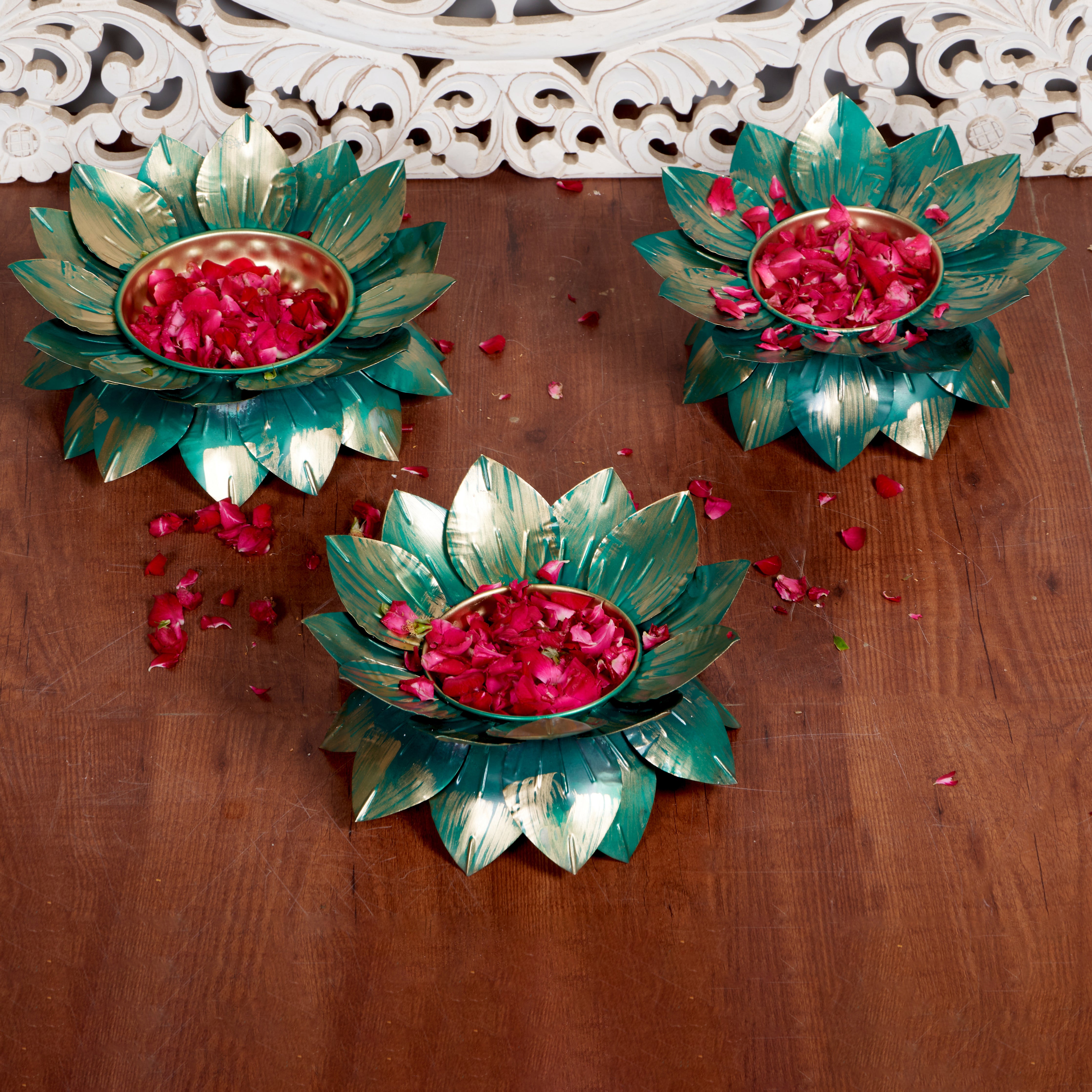 Add a touch of charm to your decor with this exquisite lotus-shaped urli set.