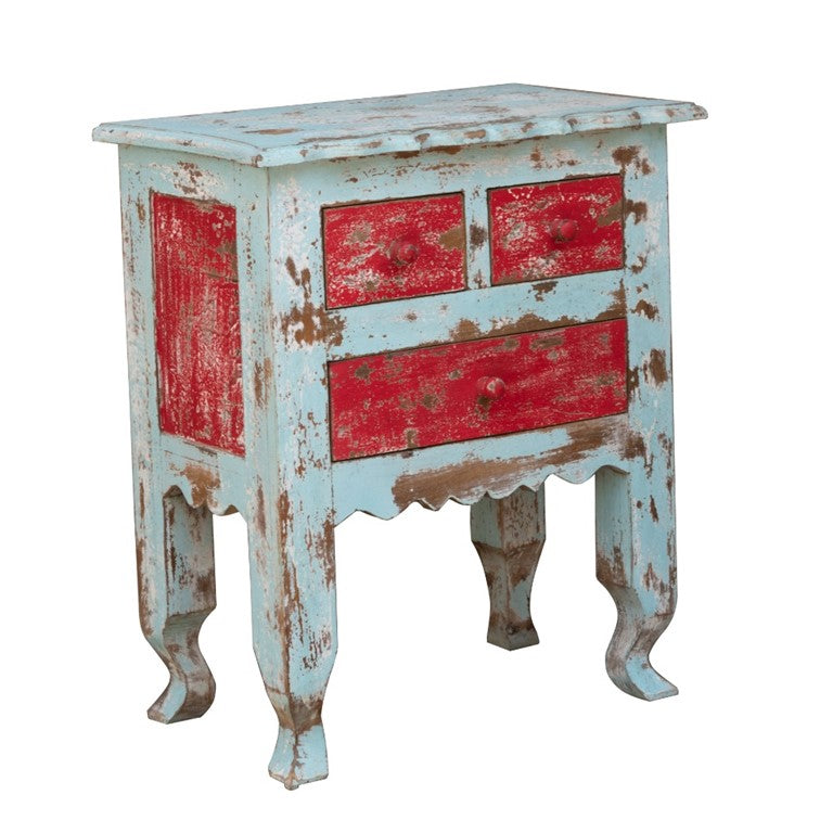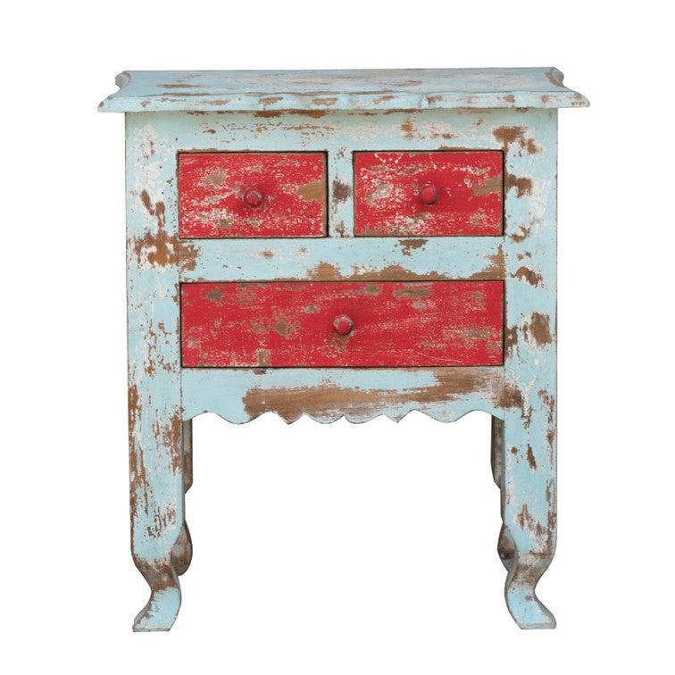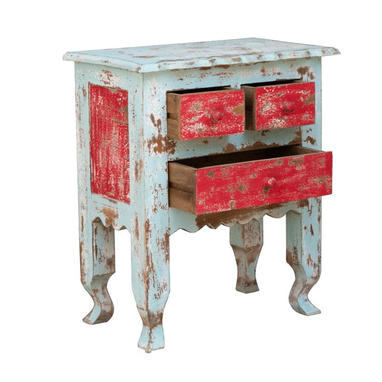 The eye-catchy bedside cabinet comes with three drawers to offer you a decent storage and is decorated with great carvings