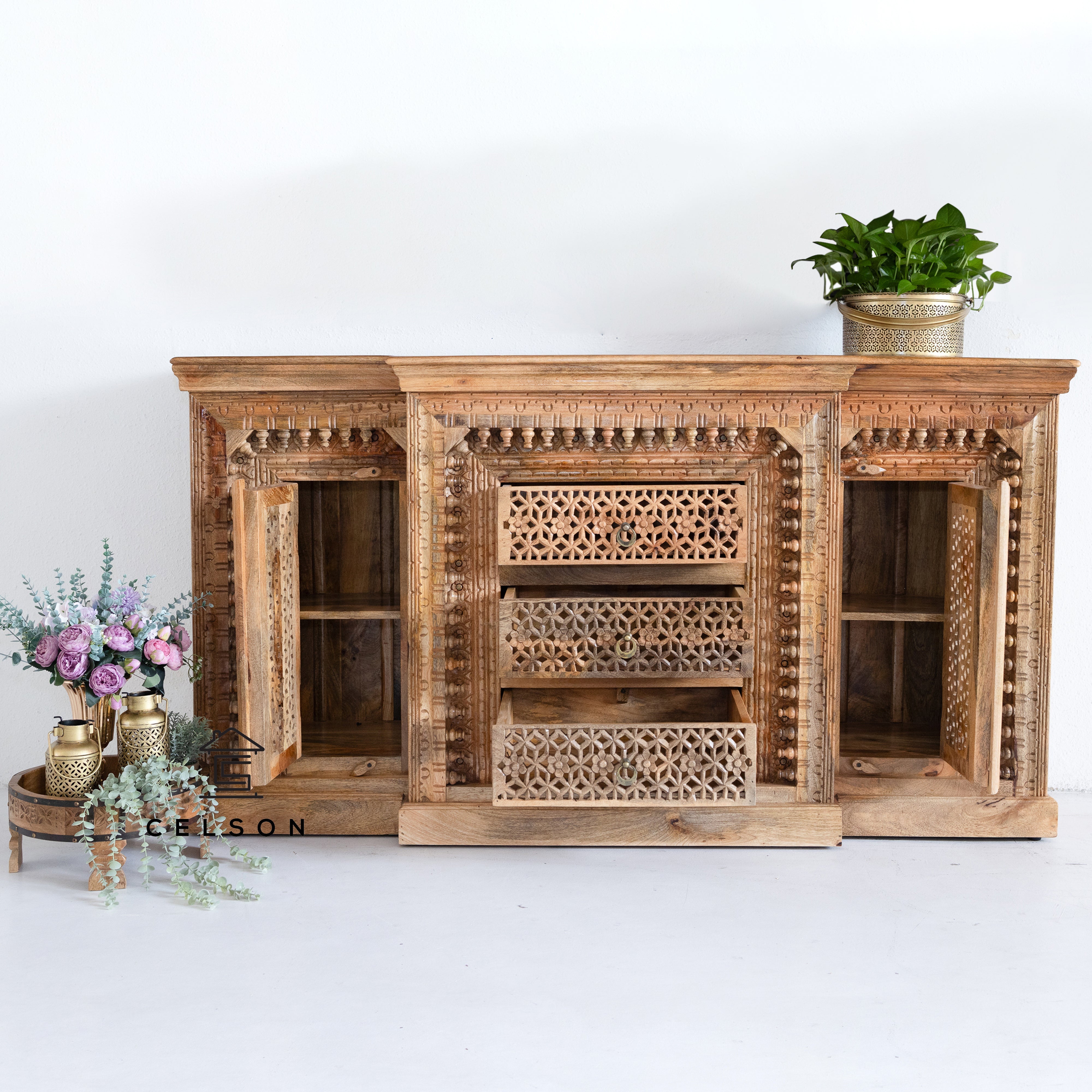 Carved and finished completely by hand, this gorgeous piece is profoundly versatile: It not only makes an ideal cabinet, but also provides statement-making storage in any room of your home.