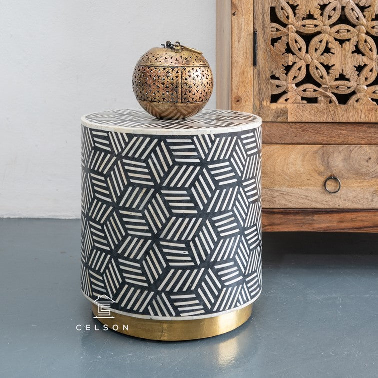 This Bone Inlay stool can be used in multiple ways - as a bed side table, as an end table, as a coffee table, as a stool, as a bar seat and so much more!