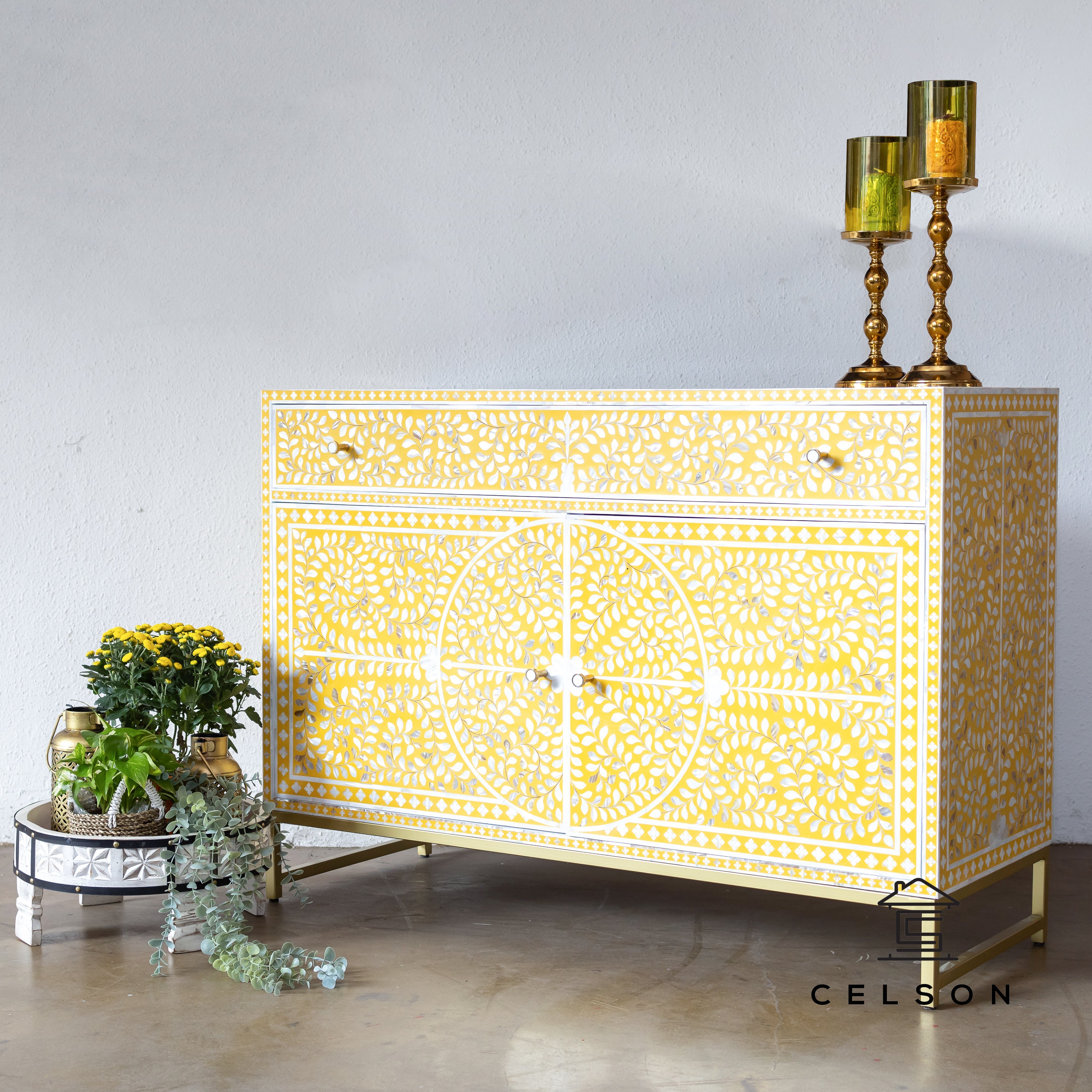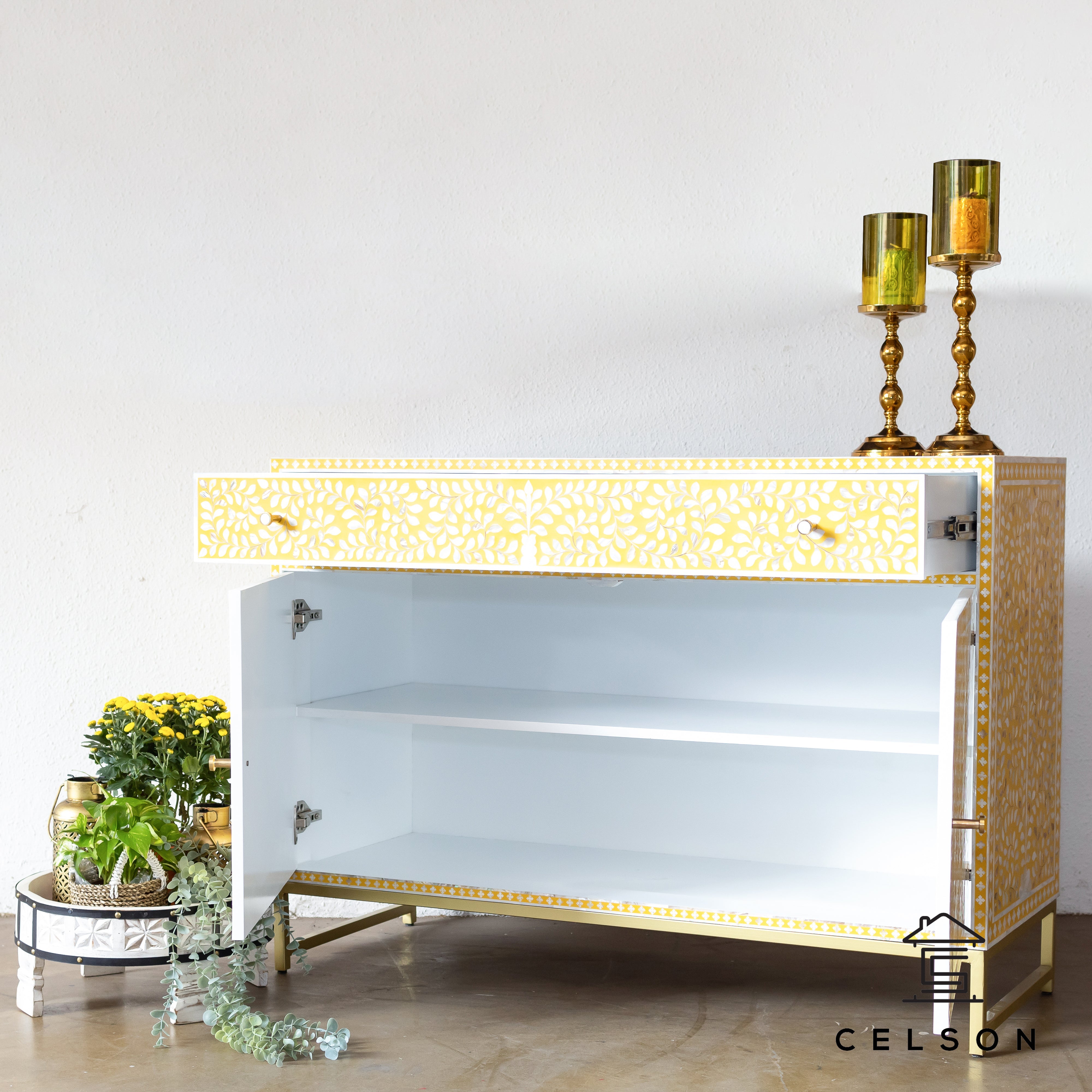 Set in a floral pattern & a lovely lemon colour, this cabinet is a must have piece!