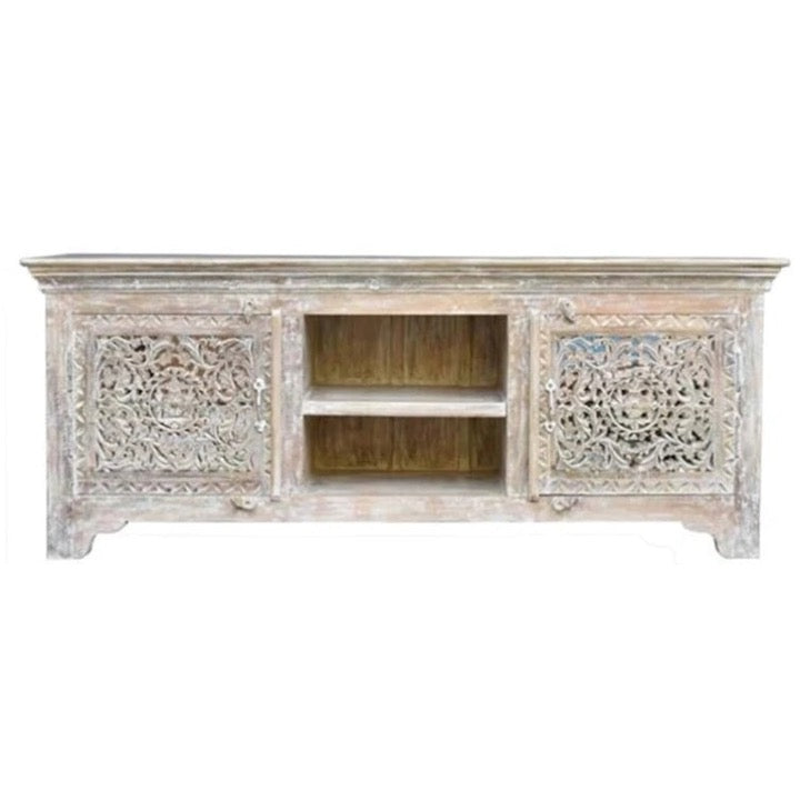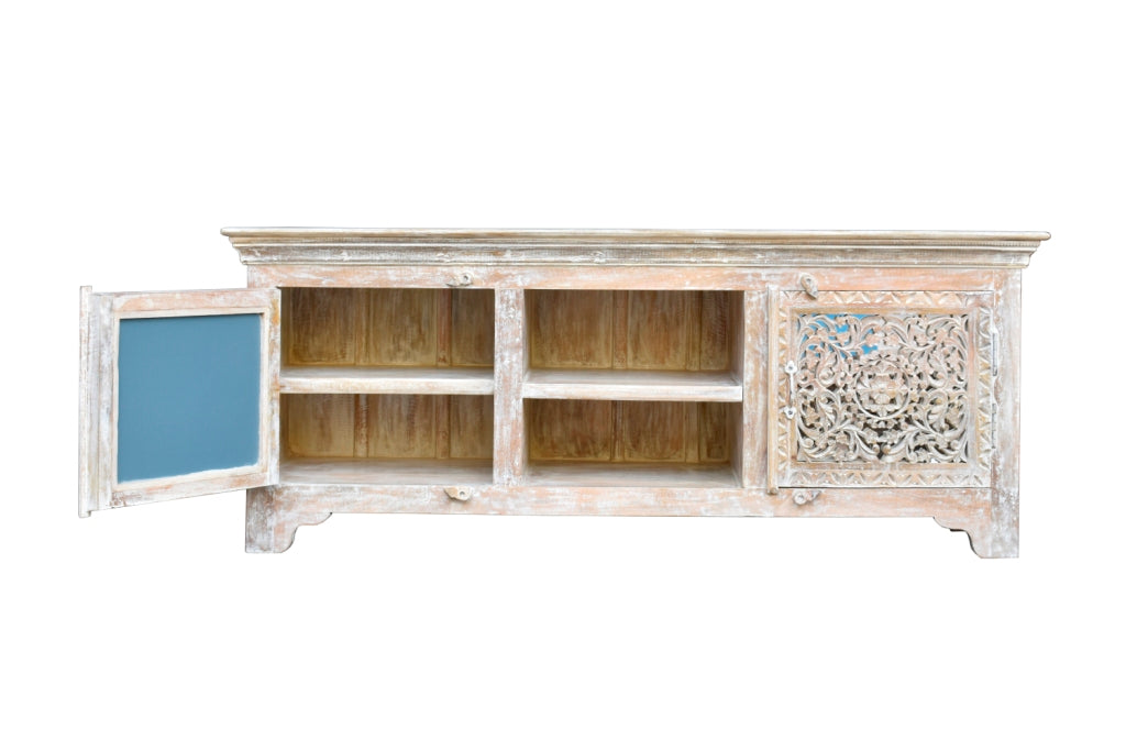 But we couldn’t resist sharing this beautifully hand carved 2 door tv cabinet! It has a ton of storage to hold all your tv attachments and a bunch of other things too!