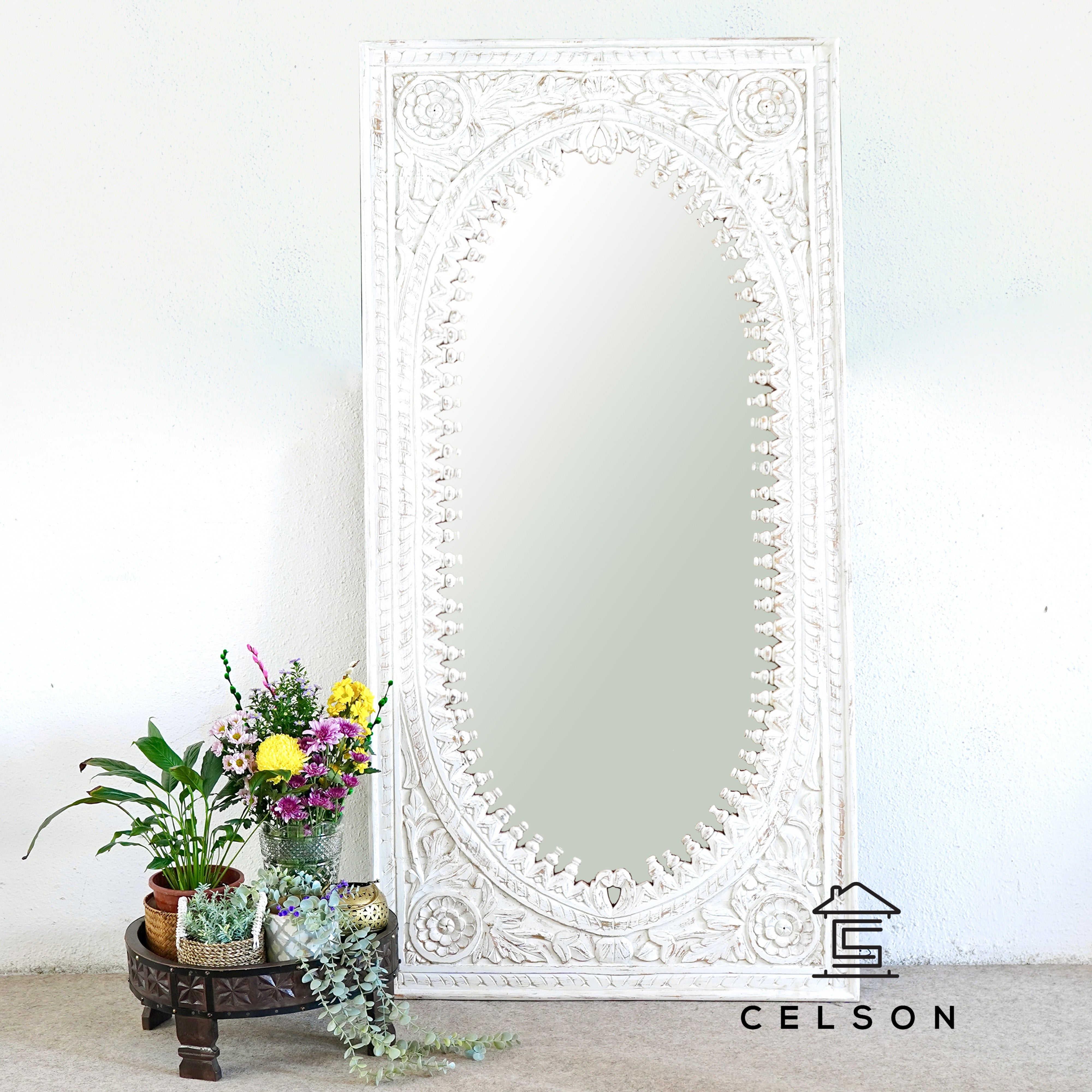 Looking for the perfect piece between spaces? This wall mirror, with its traditional window-inspired frame and distressed finish, adds charm and character. Ready to hang with built-in metal hooks.