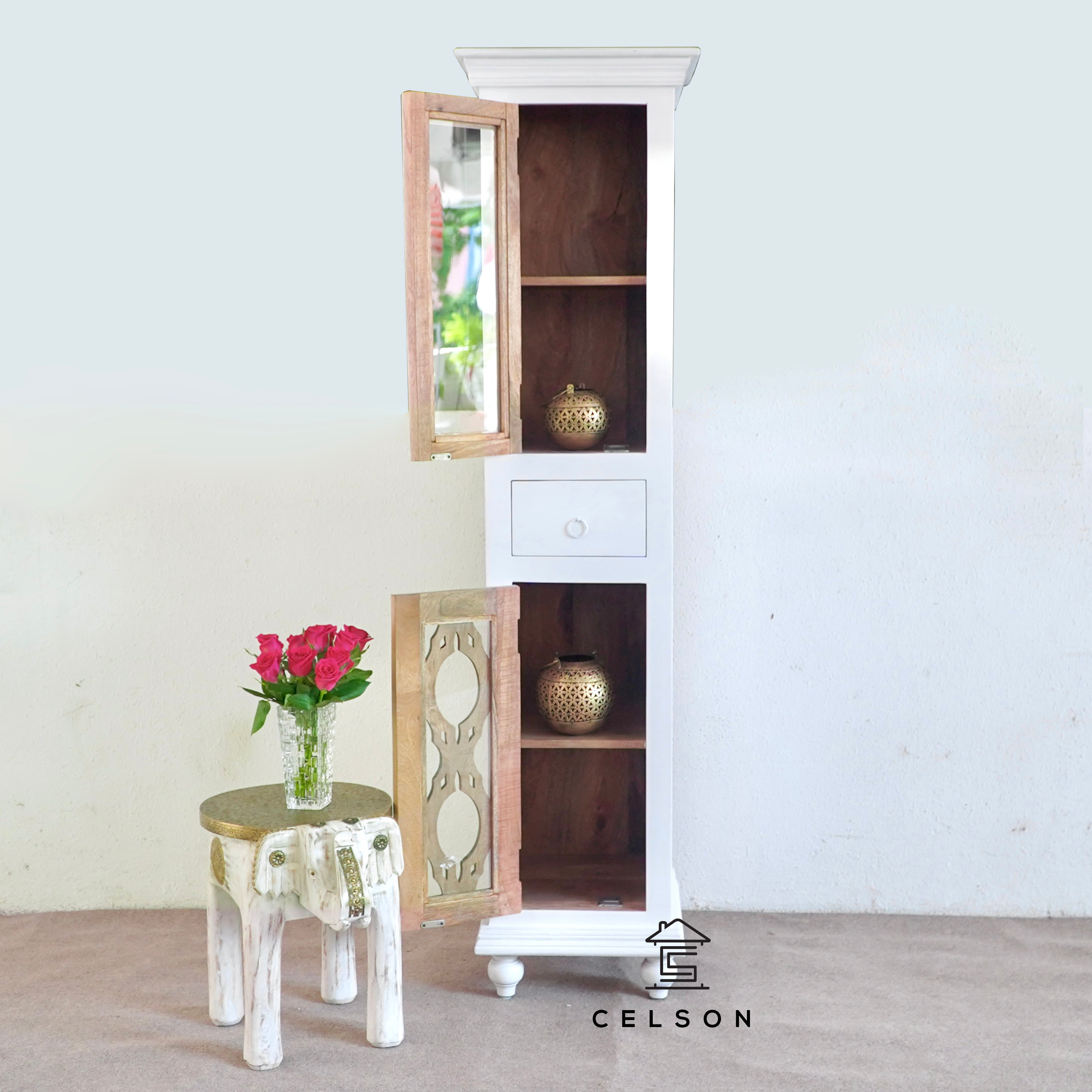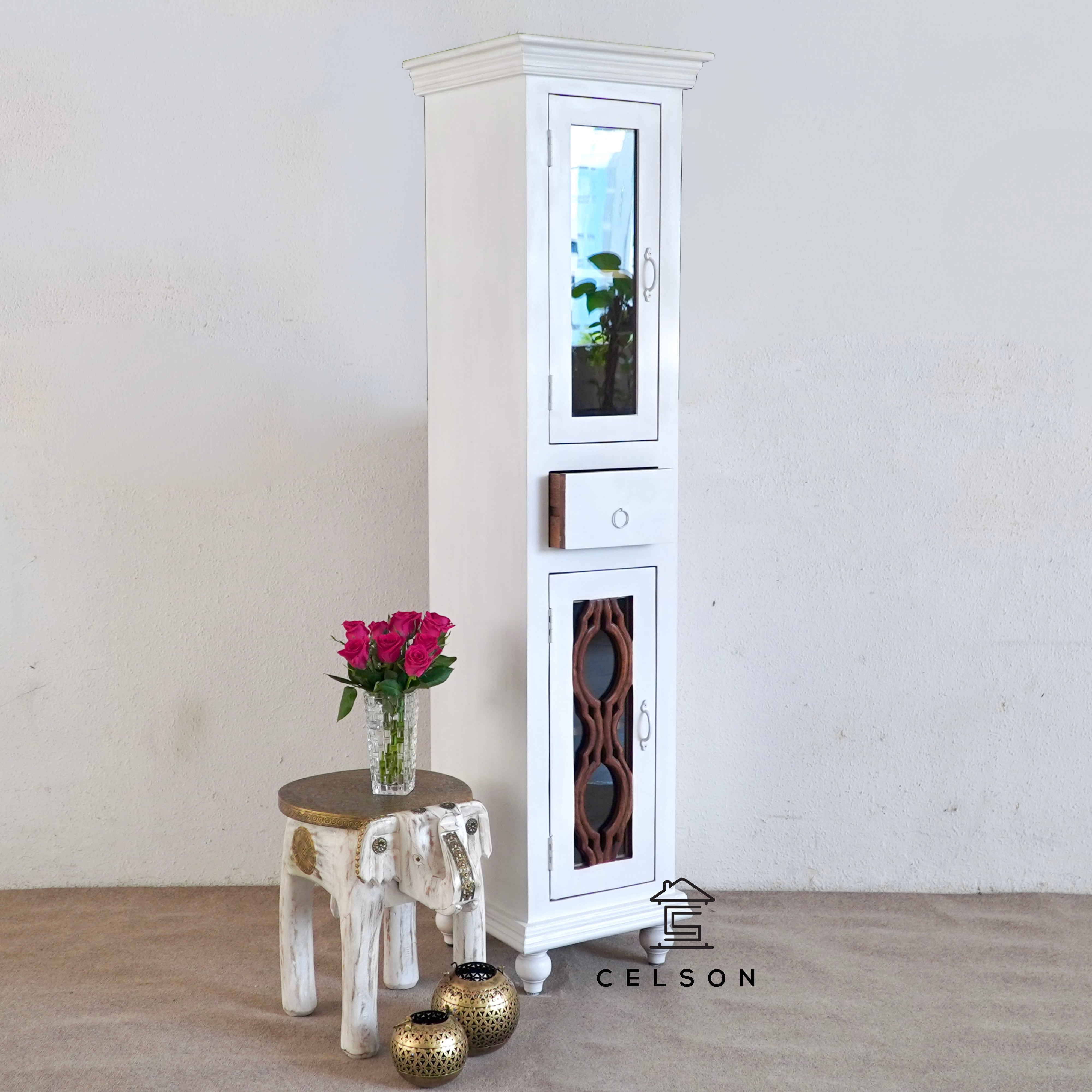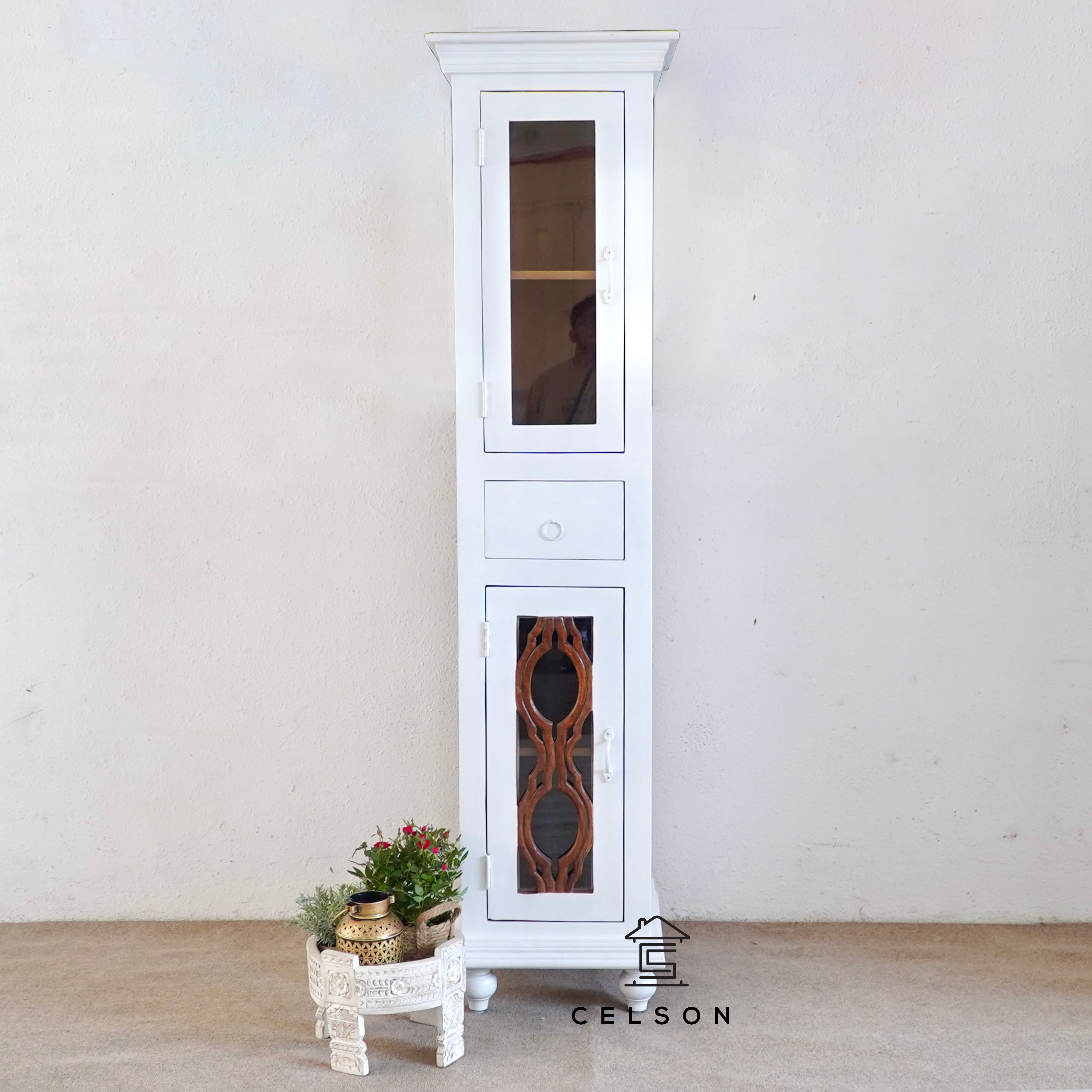 Sleek, tall, and timeless - this glass cabinet is perfect for showcasing your favorite pieces in style.
