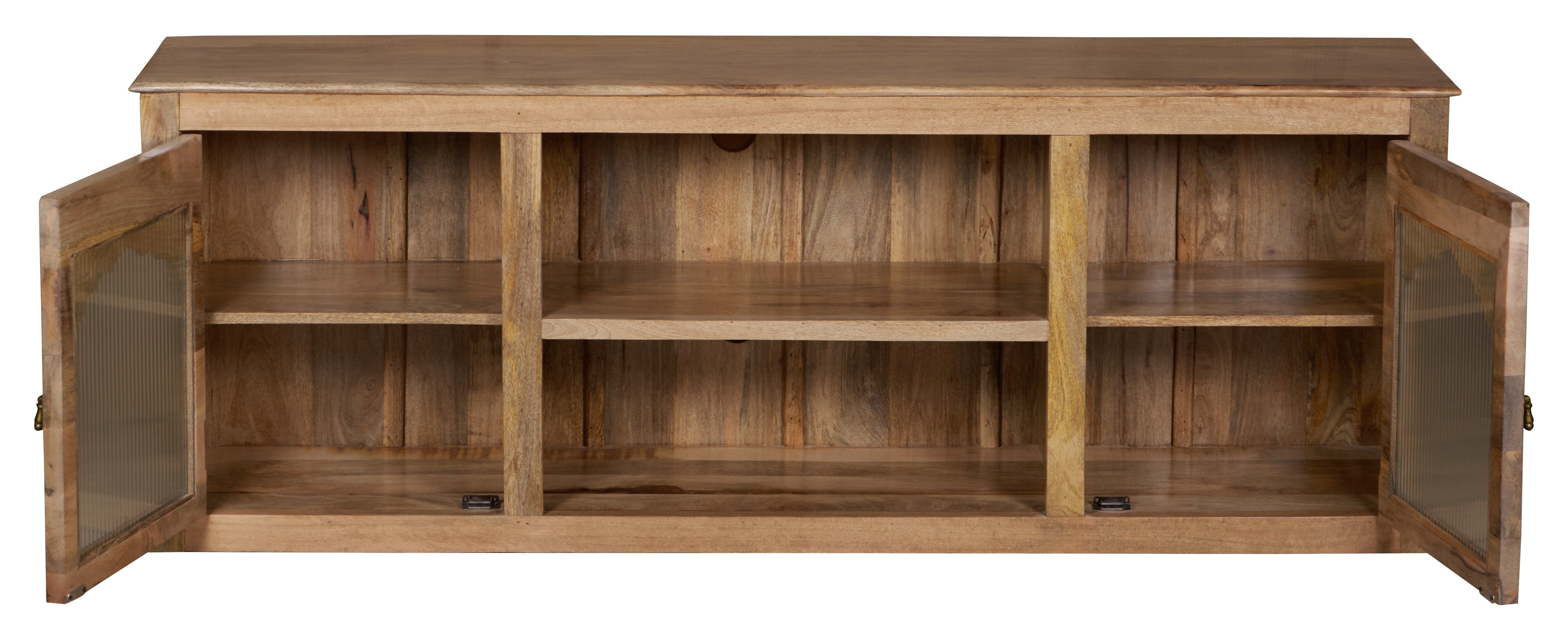 Infuse your living space with rich tradition and modern flair. This hand-carved Indian TV unit, featuring elegant rattan doors, brings together timeless craftsmanship and natural texture, offering both style and functionality to your home.