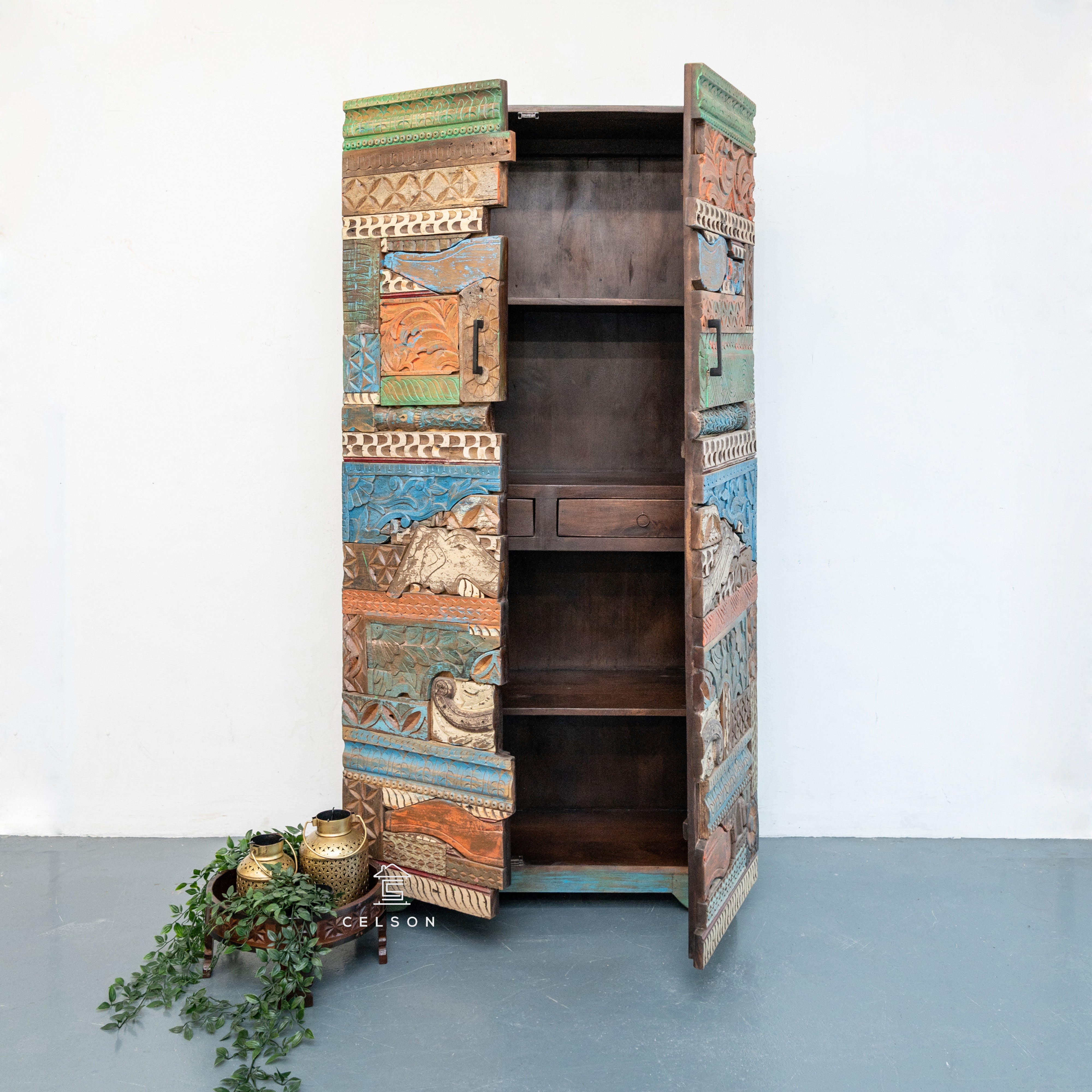 Our Wivan almirah, having sturdy solid wood construction with multi color finish works perfectly with the color scheme of any bedroom, living room, and hallway or entryway.