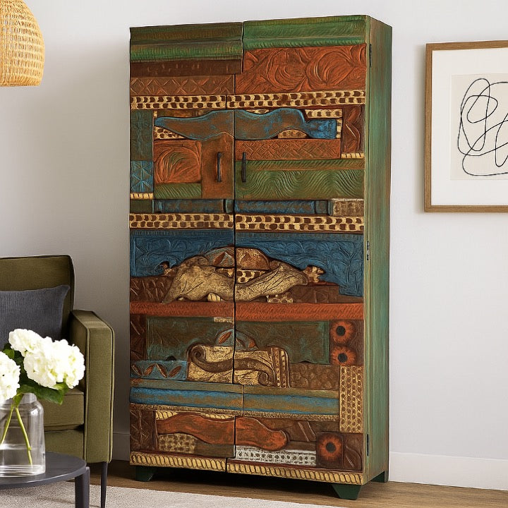 Our Wivan almirah, having sturdy solid wood construction with multi color finish works perfectly with the color scheme of any bedroom, living room, and hallway or entryway.